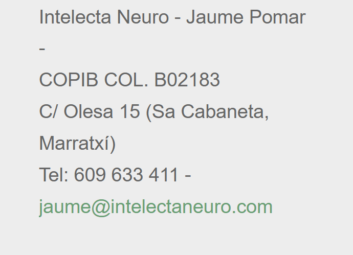 Para solicitar información sobre el centro o concertar una primera visita pueden escribir a: jaume@intelectaneuro.com